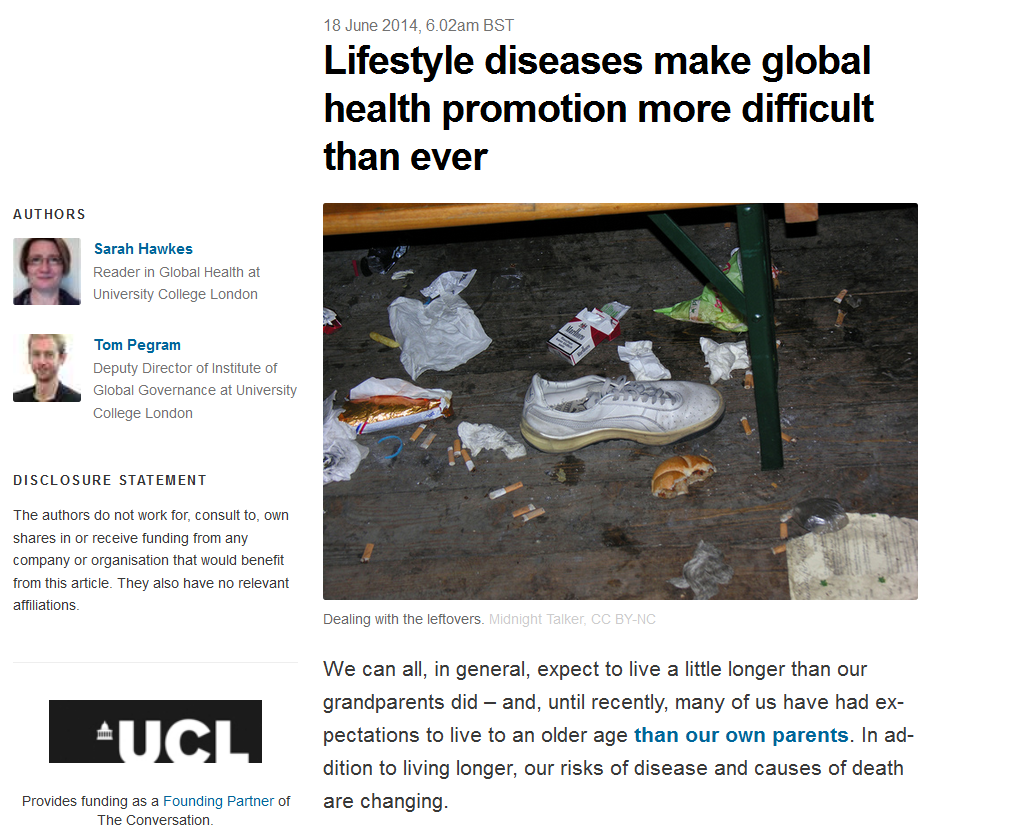 The Conversation June 27, 2014 1009 × 833 Lifestyle diseases make global health promotion more difficult than ever